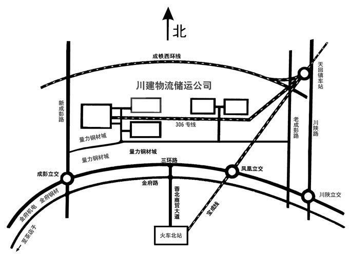 川建物流公司地理位置得天獨(dú)厚,地處成都市外北洞子口生資、建材、機(jī)電市場黃金地段,三環(huán)路成彭立交橋外200米,西緊靠新成彭公路;東臨國家鐵路寶成線、南通過成都市蓉北商貿(mào)大道僅4公里到達(dá)成都火車北站;北有成都鐵路西環(huán)線、成都繞城公路環(huán)繞其外;公司擁有5.8公里306鐵路專線與寶成鐵路在天回鎮(zhèn)接軌,自有GK1C、東方紅5型內(nèi)燃機(jī)車各一臺,并有編組站線。四通八達(dá)方便快捷,是貨物儲存中轉(zhuǎn)的理想場地。川建物流儲運(yùn)公司機(jī)械化操作程度高,各類裝卸設(shè)備齊全,有8噸、16噸、50噸汽車吊各一臺;有C7022、C5530、H3/36B等塔式起重機(jī)5臺;10噸、20噸行車3臺;3噸叉車2臺。本公司還有專業(yè)運(yùn)輸車隊(duì),各型載重汽車數(shù)十輛,并具有維修各種工程機(jī)械、汽柴油機(jī)動車輛的能力和資格。