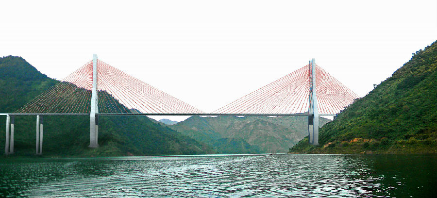黔南布依族苗族自治州羅甸縣與廣西壯族自治區(qū)河池市天峨縣的交界處,跨越紅水河的高速公路斜拉橋,是銀百高速公路G69惠水至羅甸段(惠羅高速)的控制性工程,大橋2013年12月開工,整個工程預(yù)計在2016年10月完工,建成后貴陽至龍邦口岸距離將縮短至400公里,是貴州面向東盟最便捷的出境通道,對促進當?shù)氐慕?jīng)濟發(fā)展將起到積極推動作用。