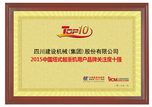 近日,中國(guó)路面機(jī)械網(wǎng)及工程機(jī)械電商網(wǎng)發(fā)布“2015中國(guó)工程機(jī)械用戶品牌關(guān)注度排行榜”,四川建設(shè)機(jī)械(集團(tuán))股份有限公司進(jìn)入“2015中國(guó)塔式起重機(jī)用戶品牌關(guān)注度排行榜”前十強(qiáng)。