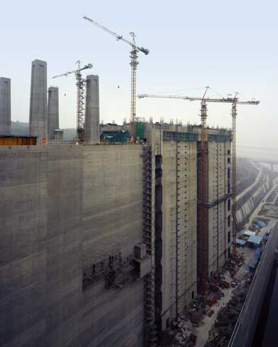 2臺C7030、2臺F0/23B塔機(jī)和4臺施工升降機(jī)-三峽大壩升船機(jī)建設(shè)工地