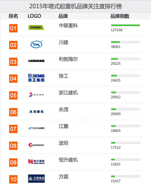 榜單是基于2015年中國(guó)路面機(jī)械網(wǎng)及工程機(jī)械電商網(wǎng)海量用戶對(duì)其平臺(tái)內(nèi)所有塔式起重機(jī)品牌、產(chǎn)品的瀏覽及在線詢價(jià)次數(shù)而生成的。該榜單能在一定程度上體現(xiàn)行業(yè)用戶對(duì)品牌及產(chǎn)品的偏好,同時(shí)在一定范圍內(nèi)反映企業(yè)品牌和產(chǎn)品在用戶群體中的影響力和覆蓋程度。