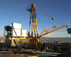 為了方便拆卸內(nèi)爬塔機,我公司自行設(shè)計研發(fā)出了屋面吊,目前有8t、10t兩種型號。選用屋面吊來進行內(nèi)爬塔機的拆卸式一個經(jīng)濟合理的方案,它與傳統(tǒng)的拆塔機方法相比,具有施工方便、施工工藝簡單、造價低、便于操作、安全可靠等優(yōu)點。
